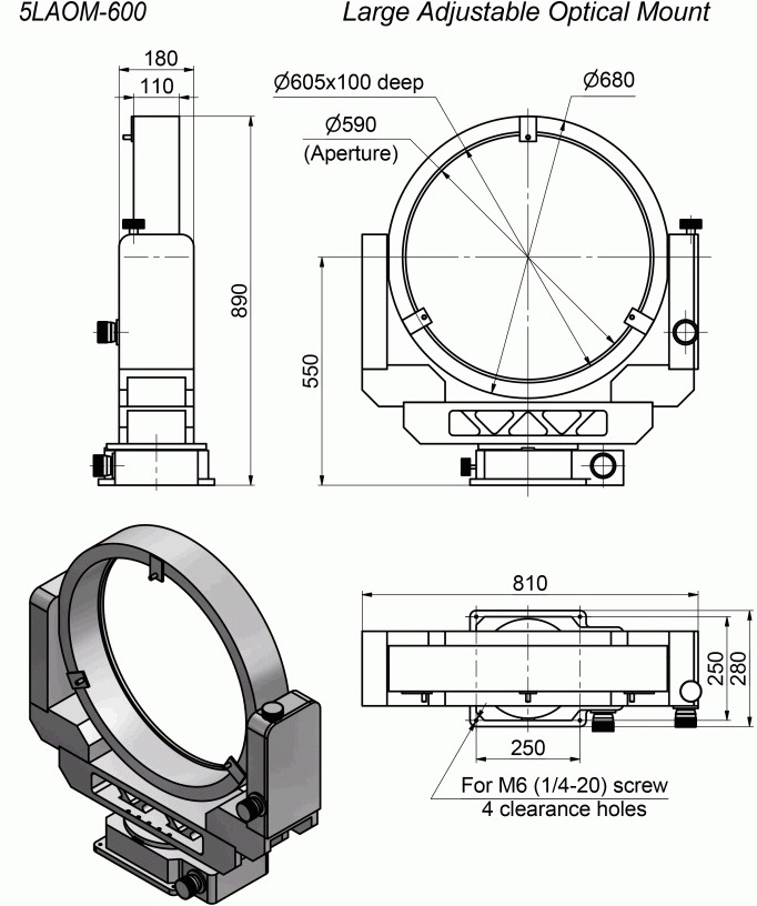 Der 5LAOMV Vakuum-kompatible Gimbal Optical Mount wurde für die hochpräzise Positionierung großer optischer Elemente bis zu 600 mm in Vakuumumgebung entwickelt. Optimal für Anwendugsgebiete wie Hochleistungslasersysteme und Astronomie.